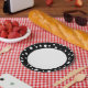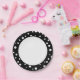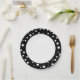 Die Papierplatte aus Party wird in einem schwarz-weißen Polka-Dots-Design dargestellt. Passen Sie dieses Element an und ändern Sie die Hintergrundfarbe oder kaufen Sie, wie es ist. In 7" Größe angezeigt. Verkauft in Paket mit acht.
