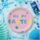 Der Gruß "Happy Oaster" mit Polka Dots auf einem pastellrosa Hintergrund.