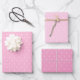 Ein charmantes und hübsches Set von Verpackungspapier mit niedlichen weißen Polka-Punkten auf drei verschiedenen rosa Hintergründen.