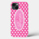 Moderne Mädchen hellrosa Polka Punkt gemusterte grafische Gehäuse. Ideal für die individuelle Gestaltung Ihres Fotos oder als Weihnachts- oder Geburtstagsgeschenk für eine Frau oder ein Teenager. Personalisieren Sie mit Ihrem Namen und Initial. Dieses Beispiel lautet: Reagen G. Design von Sarah Trett.