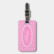 Moderne Mädchen hellrosa Polka Punkt gemusterte grafische Gepäckmarke. Ideal für Ferien und Ausflüge. Fügen Sie Ihren Namen und Initial vor Tag und anpassen Sie die Rückseite dieses Tags mit Ihrem Namen und Adresse Details. Entworfen exklusiv von Sarah Trett.