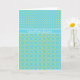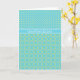 Eine schicke Get Well-Karte mit einem Mix'nmatch-Muster aus Polka Dots und einem daffodischen Muster in Blassgelb auf einem türkisfarbenen Hintergrund.
