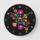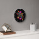 Einzigartige Folklorekomposition mit rosa und gelben Blumen inspiriert von der Volkskunst Wycinanki aus Lowicz . Niedlich als Geschenk für volkstümliche Menschen. Runduhr mit polnischer Folklore