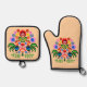 Polnische Volkskunst - Blumenstickermuster Ofenhandschuh & Topflappen-Set