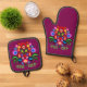 Polnische Volkskunst - Blumenstickermuster Ofenhandschuh & Topflappen-Set