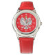 Kinderuhr aus Edelstahl mit rotem Lederarmband
