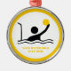 Wasserpolo-Spieler schwarze Silhouette Metall-Ornament mit einem minimalistischen Piktogramm-Symbol einer schwarzen Silhouette eines Wasserballspielers hält seinen Ball vor dem Tor und Ihr Text auf weißem Hintergrund mit gelbem Rand. Dieses coole, moderne Design ist eine Vorlage und ist vollständig anpassbar. Personalisieren Sie es und ändern Sie Text mit Monogramm, Namen oder Ihrer Nachricht. Das perfekte Geschenk für den Wasserpolo-Athleten oder Liebhaber in Ihrem Leben.