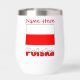 Der personalisierte Edelweintumbler zeigt die polnische Flagge, die mit dem Wort POLSKA unten in Buchstaben, die mit der Fahne verfärbt sind, zeigt. Oben ist ein Ort für einen Namen, in roten Buchstaben, für einen personalisierten Look. Ideal für Wiedersehen, Reisegruppen und Clubs. Ideal für Mama oder Vater am Muttertag oder Vatertag.