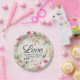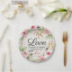 Polterabend Aquarell Rosa Blume Rustikales Holz Pappteller