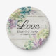 Moderne Polterabend Papier Platten Vorlagen - Elegante schöne Aquarellfarben Sukkulente Pflanze auf weißem rustikalem Holzhintergrund. Ein perfektes Design für Ihren großen Tag! Alle Textstile, Farben, Größen können an Ihre Bedürfnisse angepasst werden.