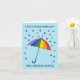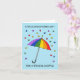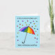 Ein Regenbogenfarbener Regenschirm mit niederbogenfarbenen Konfetti fällt darüber, Set gegen einen blassblauen Hintergrund, die Worte "Ein Polterabend Geschenk für ein besonderes Paar" begleiten das Bild.