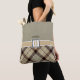 Polterabend Party Tartan Monogram Name Bridal Trendy, elegant und modern anpassbar Tasche bietet "personalisierte Namen" auf Battleship grauem Hintergrund oben, "personalisierte Monogramm" auf Burlywood Streifen darunter und Burlywood / Battleship graue karierte Tartan Hintergrund am unteren Ende. Personalisieren Sie diese schöne Tasche als ein wunderbares Geschenk für eine Braut, Brautjungfrau, Trauzeugin, Lehrer, Freund oder ein Mitglied Ihrer Familie durch Hinzufügen Ihres Monogramms / ändern Sie den Schriftart, Farbe, Größe und Position.