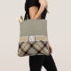 Polterabend Party Tartan Personalisiert Bridal Tote Tag Chic, elegant und stilvoll anpassbar Tasche zeigt Battleship grau oben, "personalisiertes Monogramm" auf Burlywood Streifen und Burlywood / Battleship graue karierte Tartan Hintergrund. Personalisieren Sie diese schöne Tasche als ein wunderbares Geschenk für eine Braut, Brautjungfrau, Trauzeugin, Lehrer, Freund oder ein Mitglied Ihrer Familie durch Hinzufügen Ihres Monogramms / ändern Sie den Schriftart, Farbe, Größe und Position.