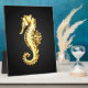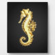 Künstlerisch, polygonal, Seepferd von funkelnden, goldene Folie auf schwarzem Hintergrund.