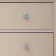 This cabinet know features a cool Polynesian ocean pattern of waves, decorated with dots, and loverly teal blue flowers. This richly patterned beach style would look good in a tropical vacation home, seaside cottage, coastal condo, or any home where you want to remember the ocean. Coordinating light switch plate covers are available.