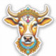 Wunderschön dekorierte Kuh mit Juwelen und Kronen- und Goldhupen für Pongal und Makar Sankranti.