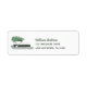 Fügen Sie Ihren Weihnachtskarten mit diesen Rücksendeadressen-Aufklebern eine nautische Touch hinzu. Sie zeigen ein Pontonboot in Grün und Weiß mit einem Weihnachtsbaum, der oben befestigt ist. Die Grafik ist Set auf weißem Hintergrund mit Ihrem Namen und Ihrer Adresse auf der Seite in grüner Schrift.