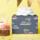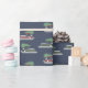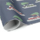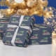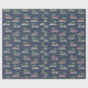 Dieses gemusterte Verpackungspapier ist ideal für Weihnachten. In der Geschenkpackung finden Sie Abbildungen von Pontonstiefeln mit einem Weihnachtsbaum auf dem obersten Set vor einem marineblauen Hintergrund.