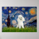 Die Starry Night von Vincent Van Gogh, einem der beliebtesten Meisterwerke der Welt, wurde angepasst, um ein weißes Spielzeug Poodle..