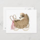 Poodle Mix Hund in einem alten, modischen Korbwagen. Sehr gute Lage für eine kleine Duscheinladung, Geschenkkarte, Haustier-Sitzer etc. Es sind mehrere Hunde und mehrere Posen verfügbar.