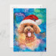 Poodle Breed Dog Weihnachten hat eine Aquarellfarbe eines Poodle mit einem roten Weihnachtshut, einem roten Weihnachtskragen und einer galaxischen Wasserfarbe.