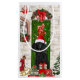Poodle Dog Weihnachten sitzen außerhalb dekorierten Zuhause mit Weihnachtskranz, Weihnachtsbaum ist eine perfekte Weihnachtsgeschenk Idee für Hundefreunde.