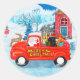 Poodle Dog Weihnachtswagen Schnee Runder Aufkleber