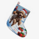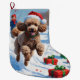 Poodle läuft im Schnee mit Weihnachtshut Großer Weihnachtsstrumpf