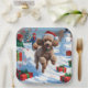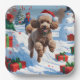 Poodle läuft im Schnee mit Weihnachtshut Pappteller
