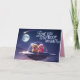 A dog Valentine's Day card featuring a poodle couple in a flying saucer going to the moon.