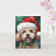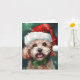 Buntes und fröhliches Weihnachtsdesign mit einem Poodle in einer Weihnachtsmannmütze.