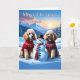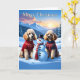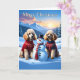Schenken Sie Weihnachtsgrüße mit diesen Poodle Weihnachtskarten, mit zwei bezaubernden Poodles, die in Weihnachtsschwitzen gekleidet sind und neben einem Schneemann sitzen, der mit Hut und Schal geschmückt ist. Die Poodle-Karte wurde speziell für Poodle-Liebhaber konzipiert und ist eine tolle Wahl für Poodle-Liebhaber.