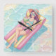 Pool Day Relaxing Girl Quadratische Wanduhr