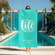 Machen Sie eine Erklärung für Ihre Zuhause oder geben Sie als lustiges Geschenk, dieses türkisfarbene Strandtuch mit Ihrem Familiennamen, das Jahr etabliert, und "Pool life cuz Strände sein salzig" in schicken weißen Schriftzeichen. PASSENDE Artikel und mehr Farben in unserer Sammlung.