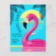 Genießen Sie einen coolen tropischen Stil mit diesen coolen Sommer-Party-Postkarten-Einladungen mit einem hellrosa Flamingo-Schwimmbad, hellen Farben und Retro-Grafik inspiriert von Miami, Y2K und Vaporwave. So festlich für Ihr Schwimmbad oder Strand Party, Geburtstag, Bachelorette, Ruhestand oder Wiedersehen!