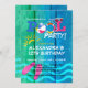 Party-Set in lebhaften Farben auf Holzfußboden - Eine tolle Möglichkeit, um die Gäste zum Geburtstag eines Kindes einzuladen!