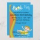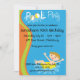 Diese niedliche Pool-Party-Geburtstags-Party Einladung kennzeichnet einen kleinen Jungen mit dem Ingwerhaar, das in einem inneren Rohr auf einem Hintergrund des blauen Wassers spritzt. Vollständig kundengerecht.