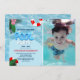 Te gusta las fiestas de piscina? Esta invitación de fiesta de piscina del verano con su agua azul cristalina, sus suaves olas te invitan a bañarte o bañarte para refrescarte. El diseño cuenta con una foto vertical y está decorado con hojas de follaje verdes tropicales, una flor rosa tropical brillante y anillos inflables tradicionales. Su plantilla moderna incluye un divertido título de "POOL PARTY" y se crea con un tipo de letra azul marino y blanco. Todo el texto se personaliza fácilmente y tiene elementos coincidentes.