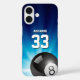 Einzigartiger Fall mit Billardball auf beleuchtetem blauen Hintergrund mit personalisierbarem Text. Haben Sie eine Leidenschaft für den Pool-Saal? Ein tolles Geschenk für Poolspieler oder Fan.