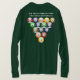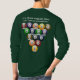 Ein Set Billardbälle in den glänzenden Farben von Gelbem, blau, rot, lila, orange, grünen, bräunen sich und schwärzen, mit grünem Hintergrund, um einer wirklichen Pooltabelle zu ähneln. Die Bälle werden in einem der richtigen Gestelle in standardisiertem AchtBall vereinbart: zwei hintere Eckbälle in den verschiedenen Anzügen, Ball 8 in der Mitte und Spitzenball auf der Fußstelle. Ein Spaß und eine bunte entspannende Illustration für das cueist, den Poolspieler, den Billiardspieler, den Snookerspieler oder den Stichwort-Sportler in Ihrem Leben. Macht auch wunderbaren Dekor für ein Mannhöhlen-, Spielraum-, Billardwohnzimmer-, Poolhallen-, Stangen-, Taverne-, Pub- oder Junggeselle-Party. Fertigen Sie mit Ihren Namen, Lieblingszitat oder anderem Text besonders an.