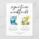 Dieses elegante Poolside Signature Mocktails-Menü enthält ein einfaches Skript über 2 Strandhochzeits- oder Poolparty-Getränke und ihre Zutaten für Ihre Küstenfeier. Ein süßes Blue Lagoon-Getränk und eine Mint Julep-Zeichnung für einen erfrischenden Sommerempfang. Komplett mit den Namen und dem Datum des Paares.