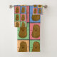 Frische Pop Handtücher im Stil der Kunst mit verschiedenen Farbrechteckigen, in der Mitte mit einer fröhlichen braunen Kartoffel.
