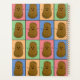 Vergnügen farbenfrohe Pop Art Zeitschrift mit einem Muster von verschiedenen farbigen Rechtecken jeweils mit einer fröhlichen braunen Kartoffel in der Mitte.