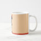 Eine Schwarz-Rot-Cartoon-Katze im modernen Stil der Mitte des Jahrhunderts, die auf einem roten Regal oder Boden sitzt, vor einem peachischen Hintergrund, schafft eine charmante Tasse. Ideal für alle, die Katzen Lieben.