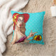 Dieses moderne Kissen zeigt eine Pop-Kunstillustrierung eines sexy Mädchens in einem luxuriösen roten Hut und Brillen, die auf die Comic-Sprechblase mit dem Slogan "Girl Power" zeigen.