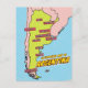 Diese illustrierte argentinische Landkarte ist in einem lebendigen Pop-Kunststil dargestellt. Die Karte ist in schwarz und mit einer hellgelben Farbe, Set vor einem blauen Hintergrund mit gepunkteten Mustern gefüllt. Die großen Städte Argentiniens sind in blauen Kartons gekennzeichnet.