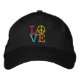 Ein Pop Art LIEBE Design mit einem ruhigen Schild bestickt auf einer Baumwollkappe.