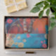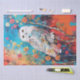 Eine schneebedeckte Eule, umgeben von lebendigen Pop, inspirierte Formen und Farben. Die weiße Eule hebt sich vor dem bunten Hintergrund von Blätter, Baumzweigen und Pinselstrichen mit Hintergrund ab. Ideal, um dem decoupage Projekt einen Pop Farbe hinzuzufügen.