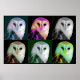 Großartiger Plakatdruck im Pop-Art-Stil, mit einer Scheuneneule in 6 verschiedenen Farben. Stilvolles Plakat für jeden Vogelliebhaber.