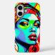 Ein atemberaubendes Pop-Kunstporträt einer selbstbewussten Frau, die in einem lebendigen, gemusterten Kopfbedeckung und fetten Ohrringen geschmückt ist. Dieses afrozentrische Kunstwerk besticht durch Farbe, Stil und Persönlichkeit - eine Mischung aus kulturellem Ausdruck und moderner digitaler Kunst. Ideal für Wandkunst, Bekleidung und Ausstattungsartikel.